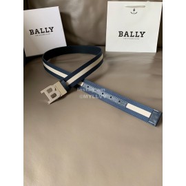 Bally New Calf Leather Stripe B Buckle 34mm Belt Blue