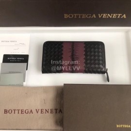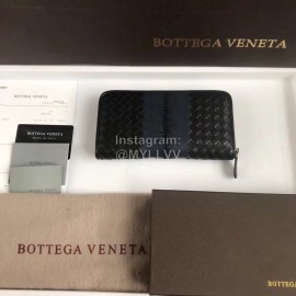 Bottega Veneta New Woven Cowhide Zipper Wallet Black