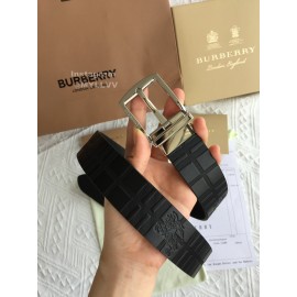 Burberry Embossed Leather Silver Needle Buckle 35mm Belts