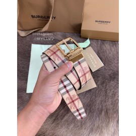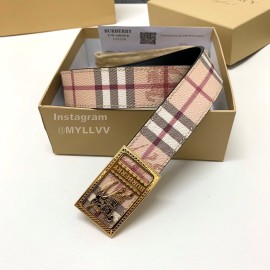 Burberry Pink Plaid Leather Gold Needle Buckle 35mm Belts