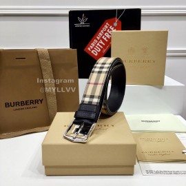 Burberry New Plaid Calf Silver Needle Buckle 35mm Belts