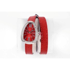 Bvlgari Serpenti Cowhide Strap Diamond Watch Red
