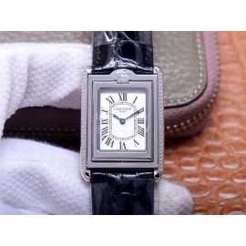 Cartier Tank Roman Numerals Square Dial Leather Strap Watch