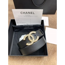 Chanel Fashion Black Calf Leather Diamond Buckle 30mm Belts For Women