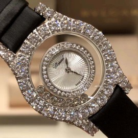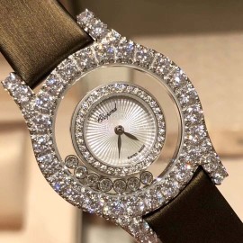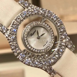 Chopard Leather Strap Happy Diamonds Watch For Women White