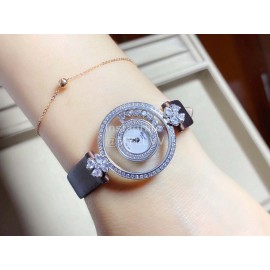 Chopard Diamond Dial Leather Strap Watch For Women
