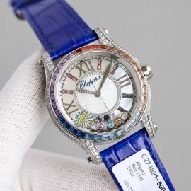 Chopard Diamond 36mm Dial Leather Strap Watch Blue