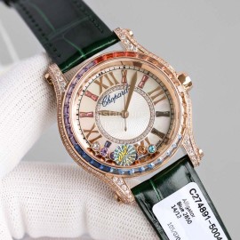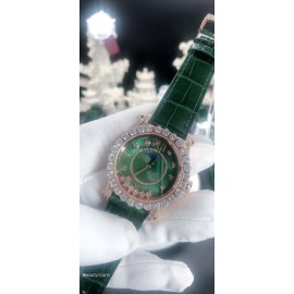 Chopard Diamond 36mm Dial Leather Strap Watch Green