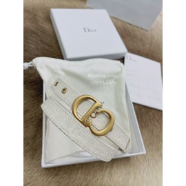 Dior New Cowhide Pattern Textile Cloth Letter Buckle 20mm Belt White