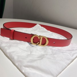 Dior Red Calf Leather Retro Metal Letters Buckle 30mm Belt