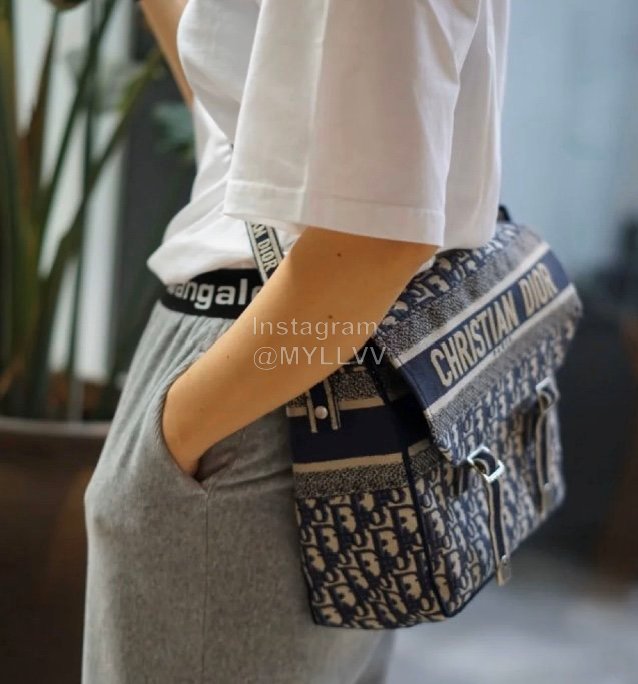 DIOR Oblique Embroidery Messenger Bag Diorcamp Bag Blue