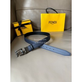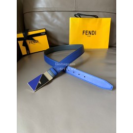 Fendi Calf Leather Enamel Buckle 34mm Leisure Belt Blue