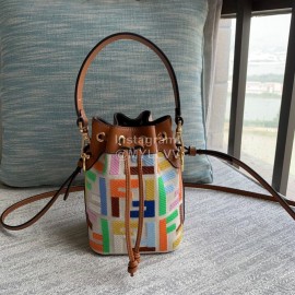 Fendi Fashion Embroidery Small Bucket Bag Coffee