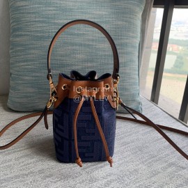 Fendi Fashion Embroidery Small Bucket Bag Blue