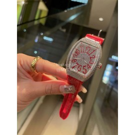 Franck Muller Diamond Roman Numeral Dial Watch For Women Red