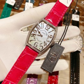 Franck Muller Roman Numeral Dial Rose Red Leather Strap Quartz Watch