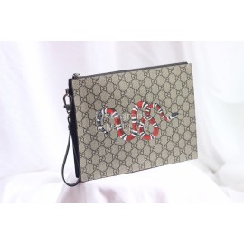 Gucci Snake Print Leather Clutch Coffee Color 547613