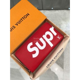 Louis Vuitton Fashionable Water Ripple Cowhide Long Zipper Wallet Red M60305