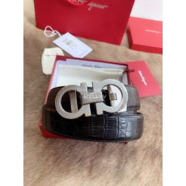 Ferragamo Black Embossed Cowhide Pure Copper Silver Buckle 35mm Belt For Men