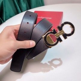 Ferragamo Black Leather Gold Buckle 35mm Belt For Men