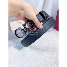 Ferragamo Black Leather Silver Pure Copper Buckle 35mm Belt