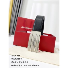 Ferragamo Black New Calf Leather Silver Buckle 35mm Belt For Men