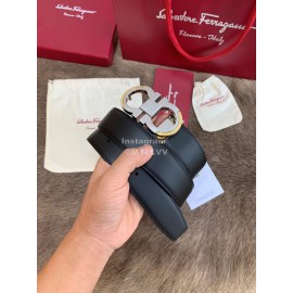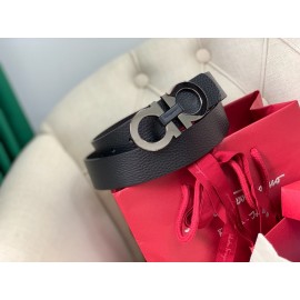 Ferragamo Calf Leather Gun Color Buckle 35mm Leisure Belt For Men