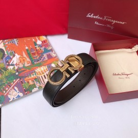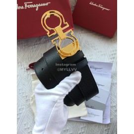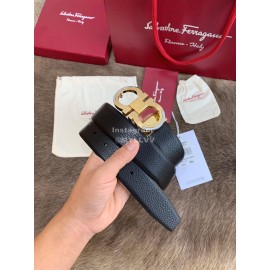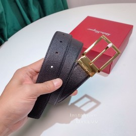 Ferragamo Calf Leather Gold Hollow Buckle 35mm Belt For Men
