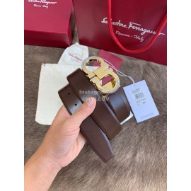 Ferragamo Calf Leather Gold Buckle 35mm Leisure Belt For Men