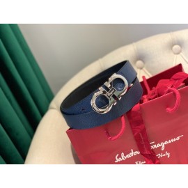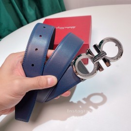 Ferragamo Calf Leather Silver Buckle 35mm Belt For Men Blue