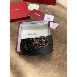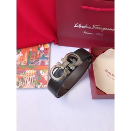 Ferragamo Calf Leather Pure Copper Hollow Buckle 35mm Belt