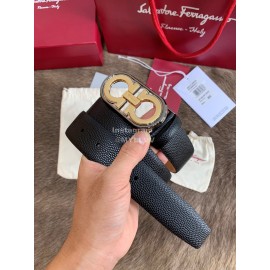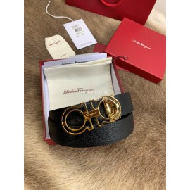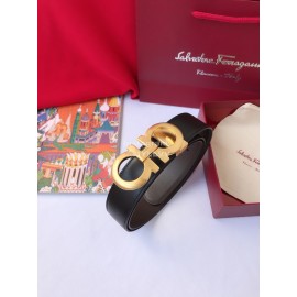 Ferragamo Calf Leather Pure Copper Gold Hollow Buckle 35mm Belt