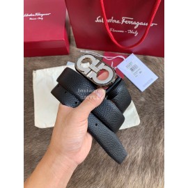 Ferragamo Calf Leather Pure Copper Silver Buckle 35mm Belt