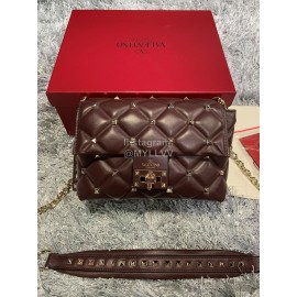 Valentino Large Palmprint V-Button Retro Shoulder Bag Wine Red 0074l