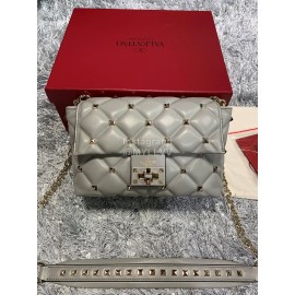 Valentino Large Sheepskin Messenger Bag Gray 0720l