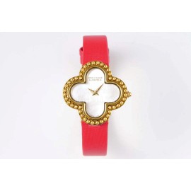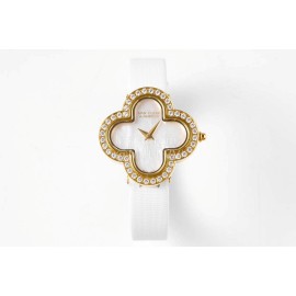 VCA clover its flower language is happiness. The first leaf represents hope; The second leaf represents faith; The third leaf represents love; The fourth leaf represents luck. Clover has always been the favorite of fashion brand fank Yabao. From necklaces to earrings to watches, there has never been a lack of clover. Size: 30.2mm Mirror: sapphire c..
