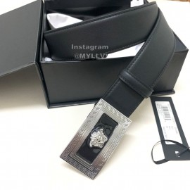 Versace Black Calf Leather Silver Square Buckle 40mm Belt