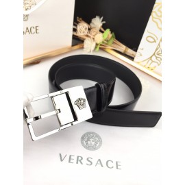 Versace Black Calf Leather Silver Pin Buckle 35mm Belt