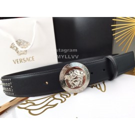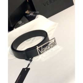 Versace Black Calf Leather Silver Letter Hollow Steel Buckle 35mm Belt