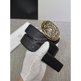 Versace Black Cowhide Gold Oval Steel Buckle 35mm Belt
