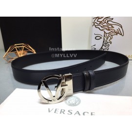 Versace New Calf Leather Silver V-Shaped Buckle 40mm Belt