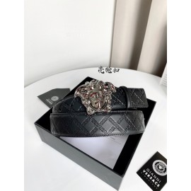Versace Plaid Calf Leather Electroplated Gun Color Medusa Buckle 38mm Belt