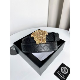 Versace Plaid Calf Leather Gold Automatic Buckle 35mm Belt For Men