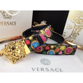 Versace New Printed Calf Leather Gold Medusa Buckle 40mm Belt