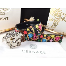 Versace New Printed Calf Leather Silver Medusa Buckle 40mm Belt