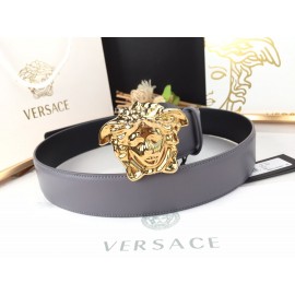 Versace New Gray Calf Leather Gold Medusa Buckle 40mm Belt
