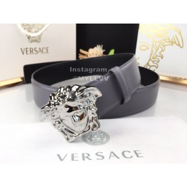 Versace New Gray Calf Leather Silver Medusa Buckle 40mm Belt