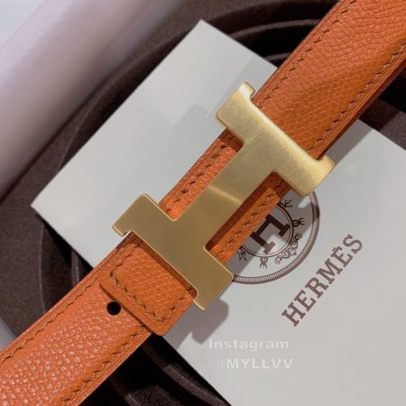 Hermes Palm Grain Cowhide Pure Steel Buckle 25mm Belt Orange