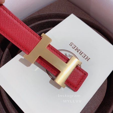 Hermes Palm Grain Cowhide Pure Steel Buckle 25mm Belt Red