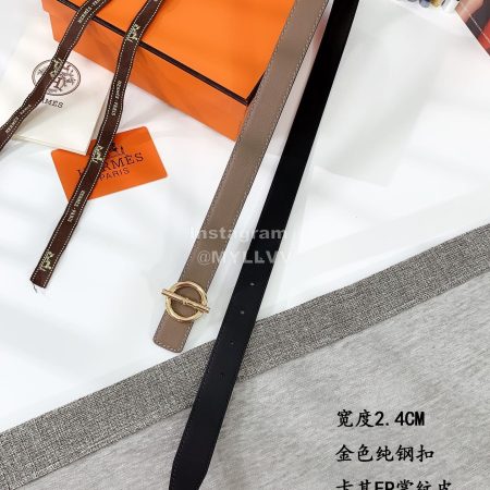 Hermes Soft Palm Calf Leather Gold Buckle 24mm Belt For Women Brown